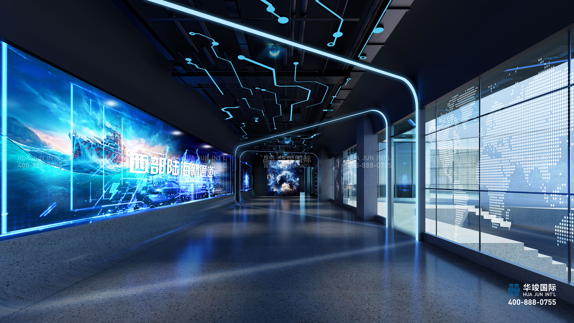 “串聯國家戰略與海南的科技通道”,塑造融海南印記、科技脈動與國際視野的沉浸式體驗空間,彰顯承運全球、貨通天下的企業特質,光影流轉間,靜謐且深邃無垠。
