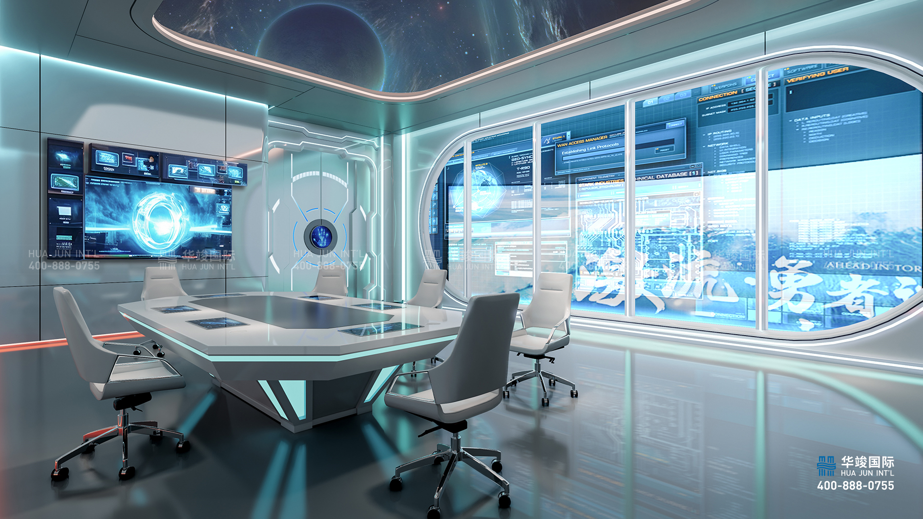以“星際穿越”為設計靈感,采用“駕駛室”般的操控中心、“指揮臺”式的決策高地以及“科技門”等時空船艙的象征元素,創造一個充滿未來科幻色彩的尊貴區域,駕馭著無形的飛船,追尋對未知的無限向往,更深刻體現了企業不畏艱難、勇往直前的精神內核,共同見證企業未來遠洋航行征程之上的堅定信念和遠大追求 。