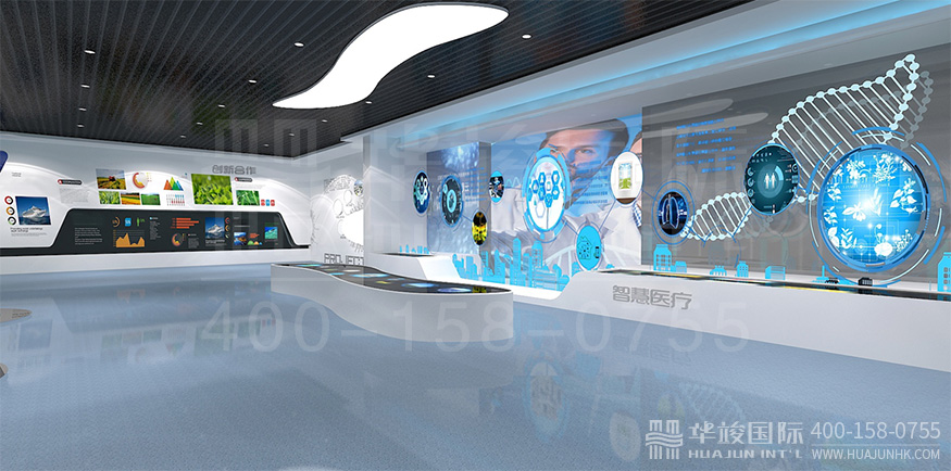 康美醫(yī)藥企業(yè)智慧展廳項目由華竣國際執(zhí)行整體設(shè)計施工,華竣國際擁有頂級展館設(shè)計團(tuán)隊和國際化的創(chuàng)新設(shè)計理念,融合互聯(lián)網(wǎng)+思維,順應(yīng)科技化趨勢,打造全新智慧多媒體展廳。
