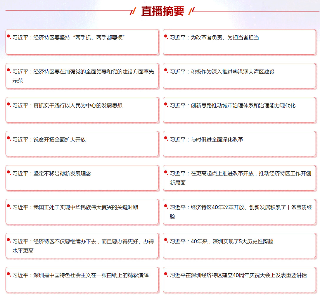 今年是深圳經(jīng)濟(jì)特區(qū)建立40周年,而今天深圳經(jīng)濟(jì)特區(qū)建立四十周年慶祝大會(huì)在廣東省深圳市隆重舉行。中共中央總書記、國(guó)家主席、中央軍委主席習(xí)近平在大會(huì)并發(fā)表了重要講話。