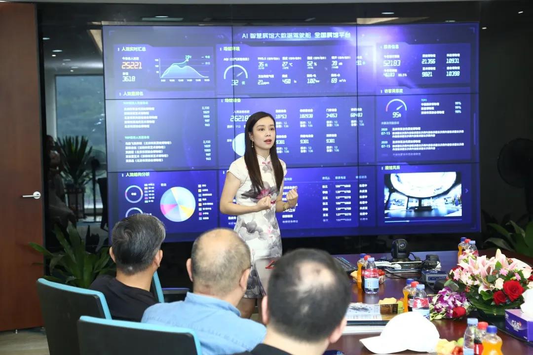 座談會上,方總介紹了當下在互聯網、5G、物聯網、人工智能、大數據等信息變革的驅動下,文化+生態+旅游+影視等關聯產業不斷呈現跨界融合的趨勢,而我國的展館行業市場規模空前盛況,但對于三四線城市的中小型展館來說建設依舊停留在傳統底含量、粗暴型的階段,此階段的展館既不能真正展示展館所賦予的價值,也不足以承載現階段文化、科技、產品、技術等的展示體驗服務,為了滿足展館行業的信息智能化市場需求,華竣國際精心打造的“AI智慧展館大數據運維再生”產品低成本的解決了大中小型展館存在的痛點及彌補數字化迭代升級空白的需求。