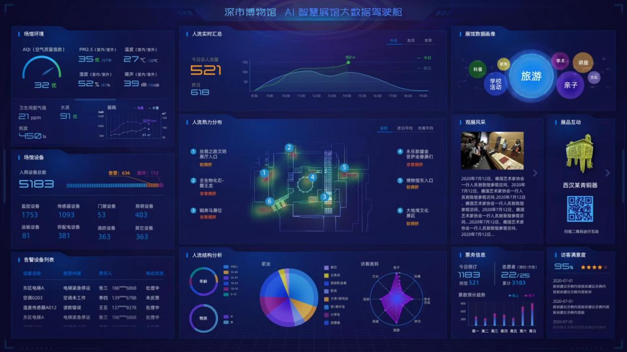 AI智慧展館數據運維再生:AI智慧展館是利用大數據、人工智能、三維虛擬現實等技術建設的全新AI智慧展館,融合了現代化智能硬件和軟件,可提升場館管理運營效率和用戶體驗,建成集“AI保護、AI管理、AI運營、AI服務”四位一體的5G應用智能化運營管理智慧體系,全面實現場館的資產數字化、設備物聯化、數據可視化,創造效益。